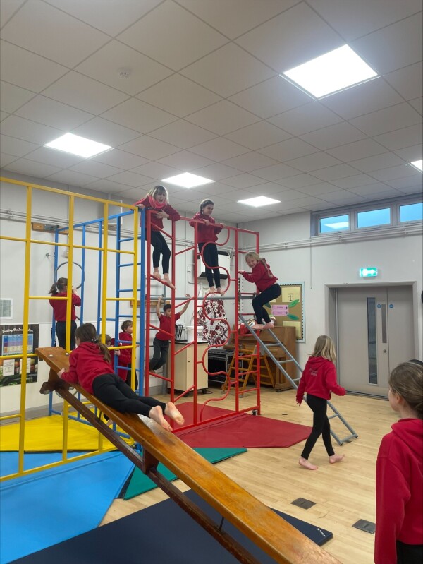 We have been exploring the gymnastics equipment in PE this week - some very brave climbers amongst us! (January 2026)