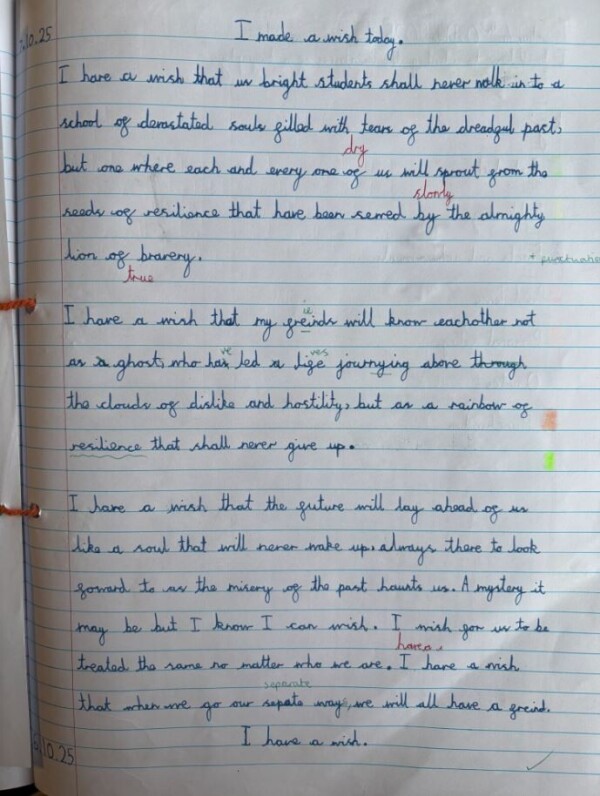 Photo of 'I Made A Wish Today': In English, we wrote our own motivational speeches about our hopes and dreams for the world, the country and our family and friends. Our writing was inspired by Martin Luther King Jr's 'I Have a Dream' speech. (October 2025)