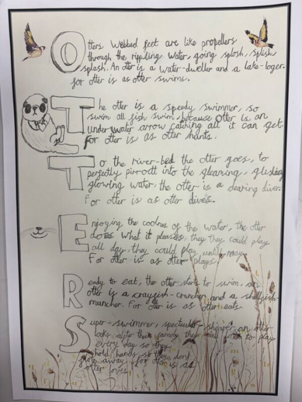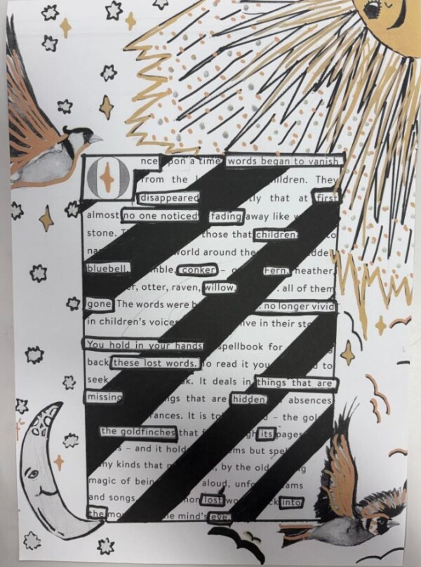 Photo of The Lost Words Blackout Poem and Otter Poem In Year 6, we created blackout poems based on 'The Lost Words' book. We also wrote our own poems based on an animal from the book. (September 2025)